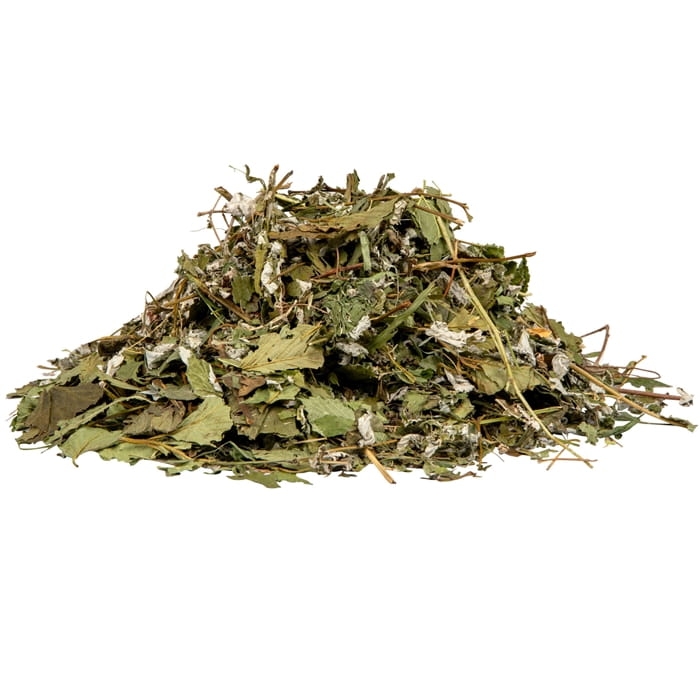 Owocowe listki to mieszanka zielonych i chrupiących liści owocowych zbieranych tuż po owocowaniu krzewów, aby ich jakość była najlepsza- najbardziej aromatyczne listki oraz najdorodniejsze. W bazie mieszanki znajduje się liść truskawki, który przez zwierzaki może być zjadany bardzo często, a na dokładkę liście malin oraz czarnej porzeczki. Mieszanka dostarcza wielu witamin i minerałów oraz ma bardzo szerokie spectrum działania. Jest idealnym uzupełnieniem diety królików i gryzoni. Poniżej przedstawiamy dobroczynne działanie każdego ze składników mieszanki.